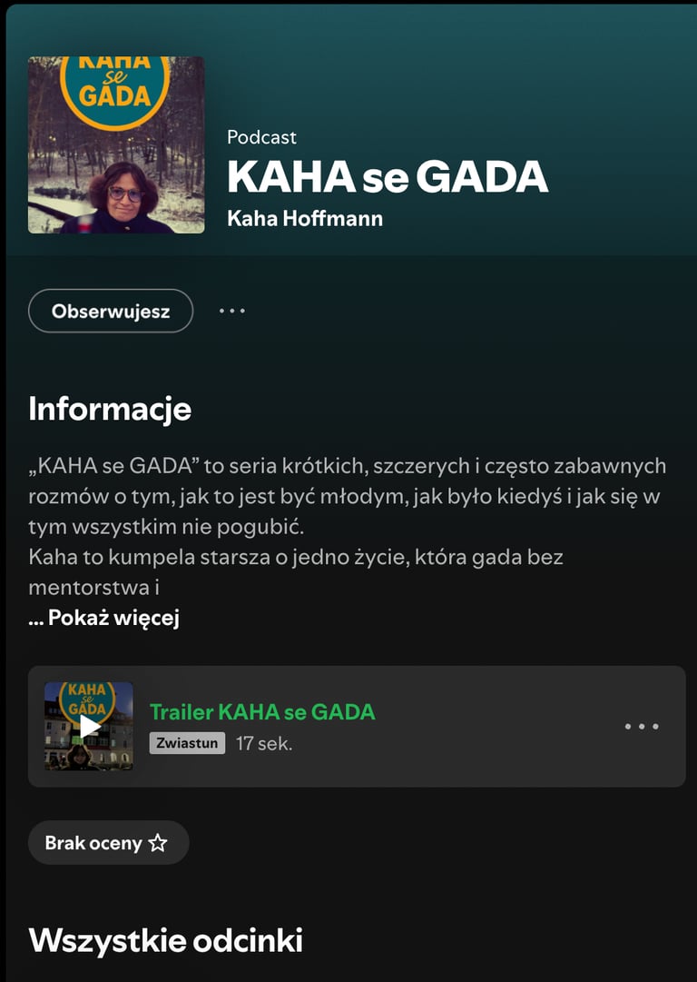 Kaha, czyli kumpela starsza o jedno życie, rozkminia codzienne problemy, daje ProTipy "tylko dla MŁODYCH" albo "tylko dla STARYCH", a czasem po prostu siada i gada z ludźmi - znanymi i nieznanymi, ale zawsze ważnymi - o tym, jak to jest być młodym dziś i jak było być młodym kiedyś.