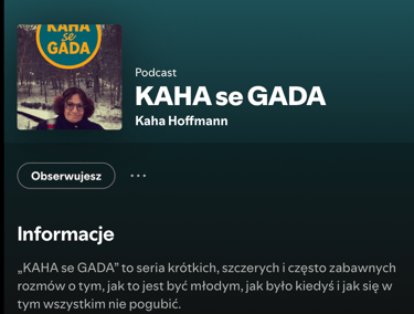 Kaha, czyli kumpela starsza o jedno życie, rozkminia codzienne problemy, daje ProTipy "tylko dla MŁODYCH" albo "tylko dla STARYCH", a czasem po prostu siada i gada z ludźmi - znanymi i nieznanymi, ale zawsze ważnymi - o tym, jak to jest być młodym dziś i jak było być młodym kiedyś.